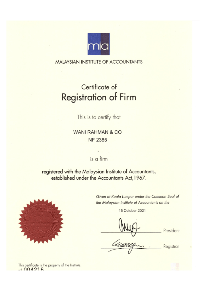 Wani Rahman & Co adalah firma berdaftar dan telah diperakui oleh badan-badan rasmi perakaunan di seluruh Malaysia.